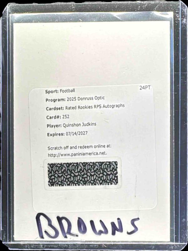 The top trending card in 2025 Optic is currently Quinshon Judkins 2025 Optic #252 Rated Rookie RPS Autographs /350.