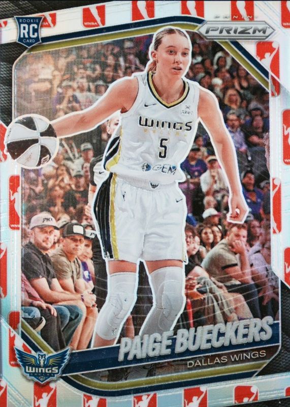 The top trending card in 2025 Prizm WNBA is currently Paige Bueckers 2025 Prizm WNBA #5 WNBA Logo.