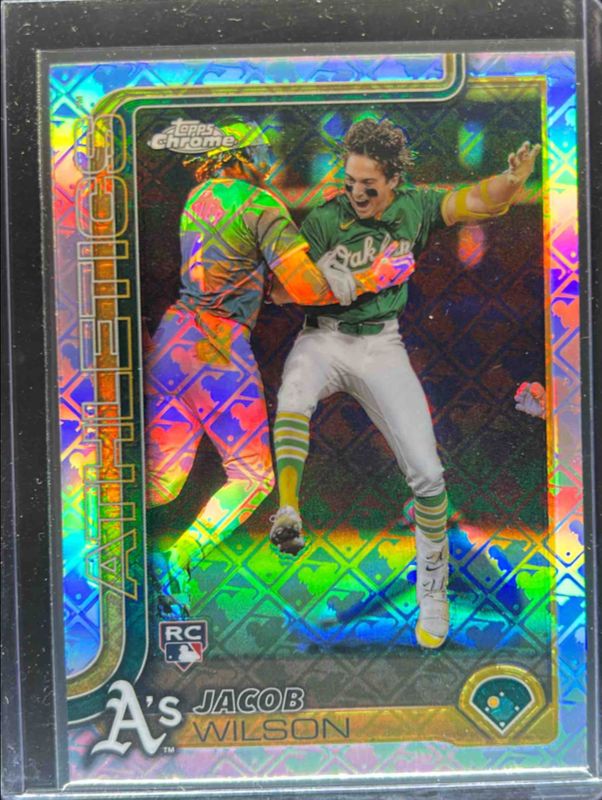 The top trending card in 2025 Topps Chrome Logofractor Edition is currently Jacob Wilson 2025 Topps Chrome Logofractor Edition #96 Image Variation.