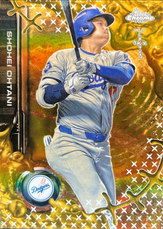 The top trending card in 2025 Topps Chrome x Cactus Jack is currently Shohei Ohtani 2025 Topps Chrome x Cactus Jack #17 Gold Refractor /50.