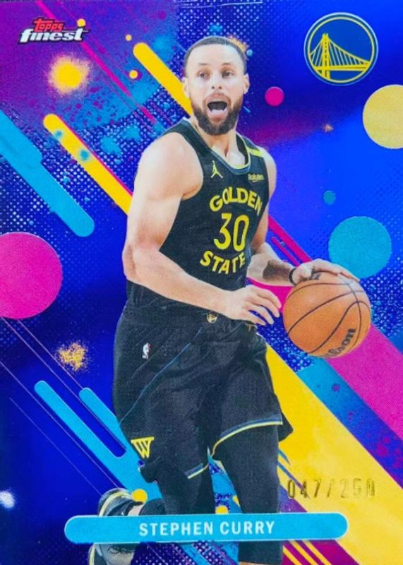 The top trending card in 2025 Topps Finest is currently Stephen Curry 2025 Topps Finest #74 Common - Purple Refractor /250.