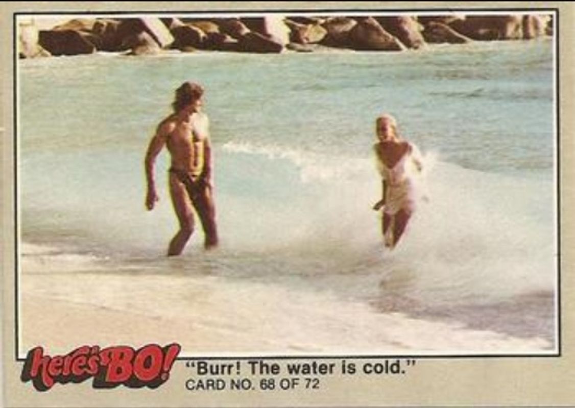The biggest 30-day change "Burr The water is cold" cards are 1981 Fleer Here's Bo! #68b Base, 1981 Fleer Here's Bo! #68c Base, and 1981 Fleer Here's Bo! #68a Base.