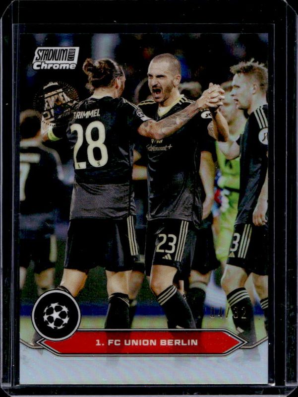 1 FC Union Berlin's Soccer cards are available in at least 2 sets. 1 FC Union Berlin's biggest 7-day price movers are 2023 Topps Stadium Club Chrome UEFA Champions League #SP-UB 32 in 32, 2023 Topps Stadium Club Chrome UEFA Champions League #SP-UB 32 in 32 - Superfractor /1, and 2021 Topps Bundesliga #188 Black Foilboard /10.