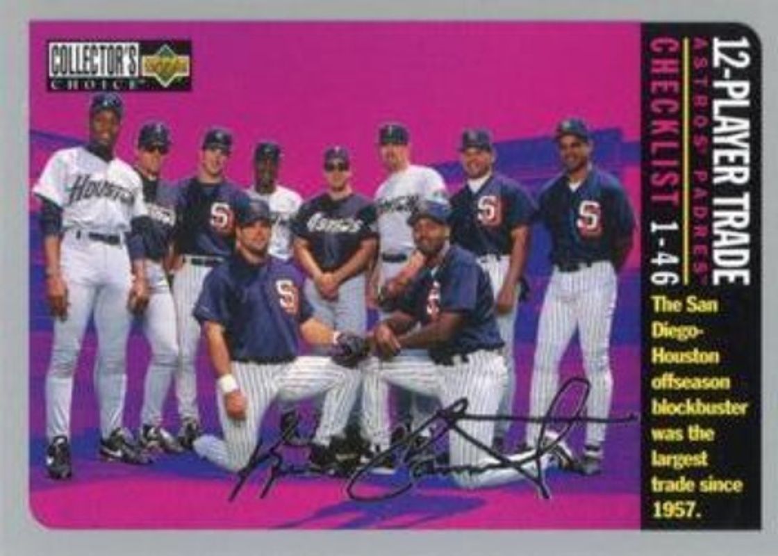 12-Player Trade's Baseball cards are available in at least 1 sets. 12-Player Trade's biggest 7-day price movers are 1996 Upper Deck Collector's Choice #358 Silver Signatures, 1996 Upper Deck Collector's Choice #358 Gold Signatures, and 1996 Upper Deck Collector's Choice #358 Base.