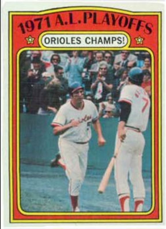 1971 AL Playoffs: Orioles Champs AL's Baseball cards are available in at least 1 sets. 1971 AL Playoffs: Orioles Champs AL's biggest 7-day price movers are 1972 Topps #222 Base.