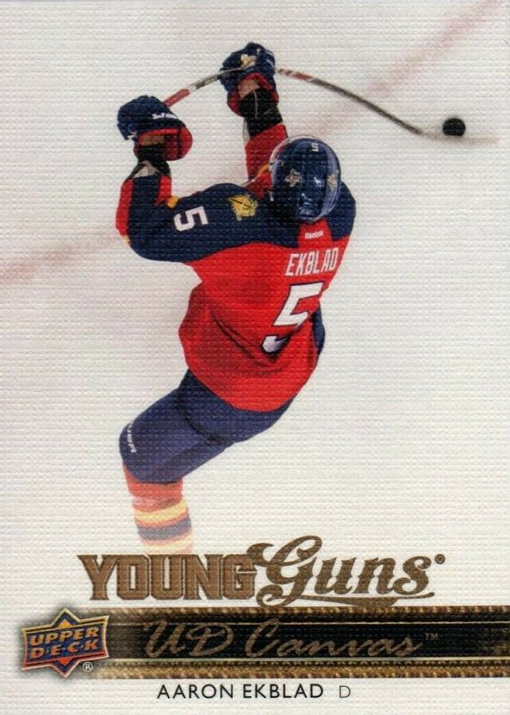 Aaron Ekblad's Hockey cards are available in at least 146 sets. Aaron Ekblad's biggest 7-day price movers are 2014 Upper Deck #C105 Young Guns Canvas, 2022 Topps Chrome NHL Sticker Collection #215 Red Refractor /5, and 2022 Topps Chrome NHL Sticker Collection #215 Orange Refractor /25.