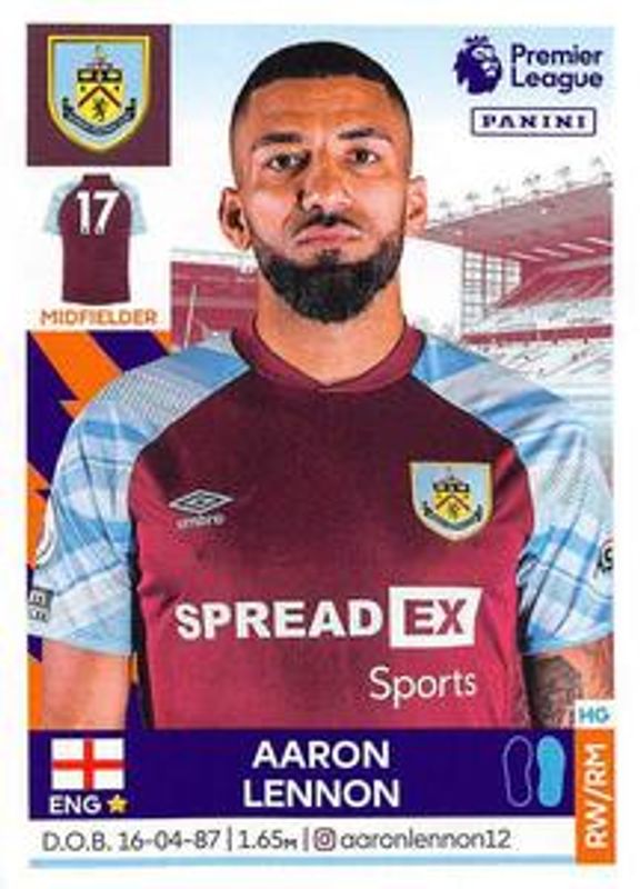 Aaron Lennon's Soccer cards are available in at least 6 sets. Aaron Lennon's biggest 7-day price movers are 2022 Panini Premier League Stickers #156 Base, 2020 Panini Football #157 Base, and 2013 Topps Premier Gold #187 Printing Plates Black /1.