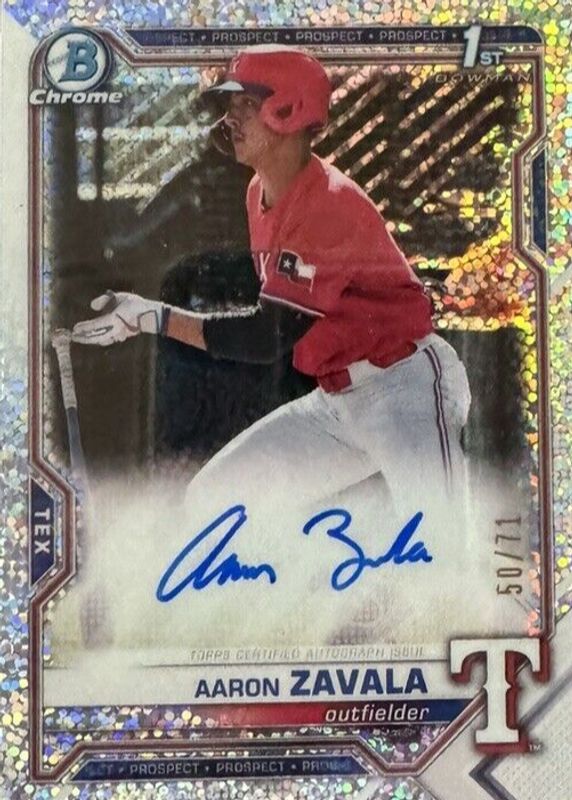Aaron Zavala's Baseball cards are available in at least 7 sets. Aaron Zavala's biggest 7-day price movers are 2021 Bowman Draft #CDA-AZ Chrome DP Auto - Sparkle Refractor /71 (1st), 2024 Prizm #SS-AZ Sensational Signatures - Blue /49, and 2024 Prizm #SS-AZ Sensational Signatures - Blue Shimmer FOTL /8.