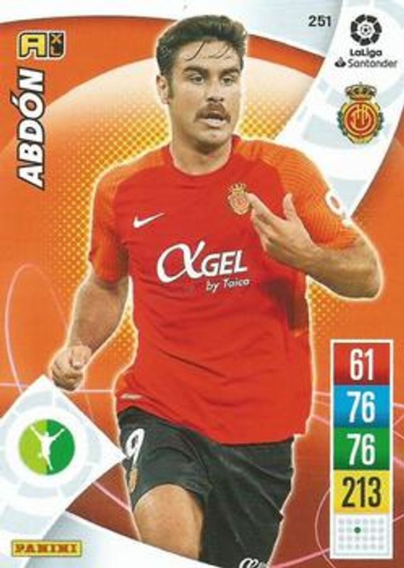 The biggest 30-day change Abdon cards are 2021 Panini Adrenalyn XL LaLiga Santander #251 Base, 2024 Este LaLiga EA Sports #19 RCD Mallorca, and 2024 Este Chicles LaLiga EA Sports Base.