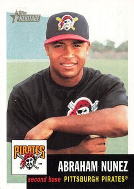 Abraham Nunez's Baseball cards are available in at least 13 sets. Abraham Nunez's biggest 7-day price movers are 2002 Topps Heritage #93 Base, 2002 Topps Heritage #44 Base, and 2007 Topps Heritage #274 Base.