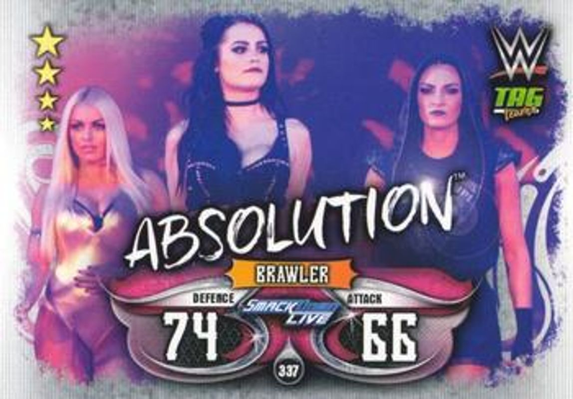 Absolution's Wrestling cards are available in at least 1 sets. Absolution's biggest 7-day price movers are 2018 Topps Slam Attax WWE Live #337 Base.