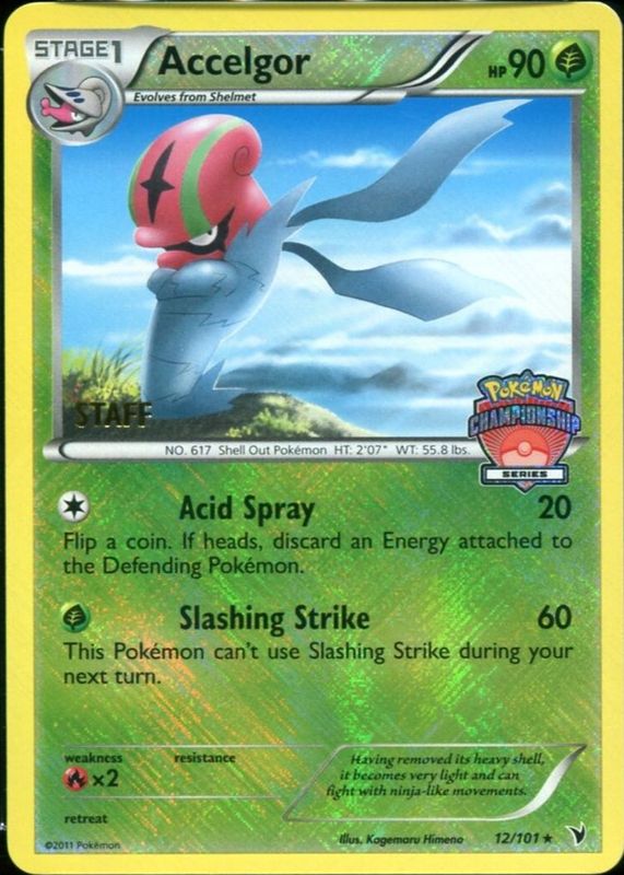 Accelgor's Pokemon cards are available in at least 14 sets. Accelgor's biggest 7-day price movers are 2025 Scarlet & Violet: White Flare #094/086 Illustration Rare, 2011 Black & White: Noble Victories #012/101 Promo (State Championships - STAFF), and 2013 Japanese Black & White: Megalo Cannon #008/076 1st Edition.