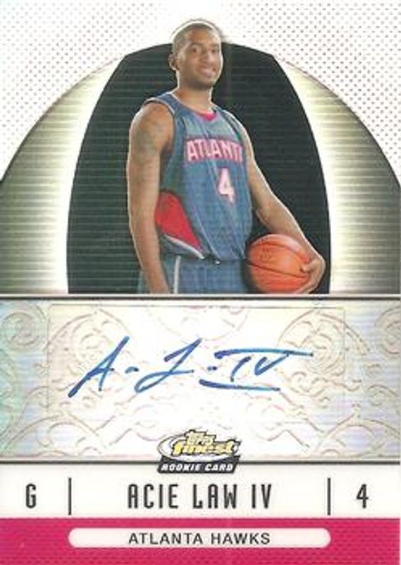 Acie Law IV's Basketball cards are available in at least 18 sets. Acie Law IV's biggest 7-day price movers are 2006 Topps Finest #111 Rookie Autographs Refractor /129, 2006 Topps Finest #111 Silver Refractor /319, and 2006 Topps Finest #111 White X-Fractor /1.