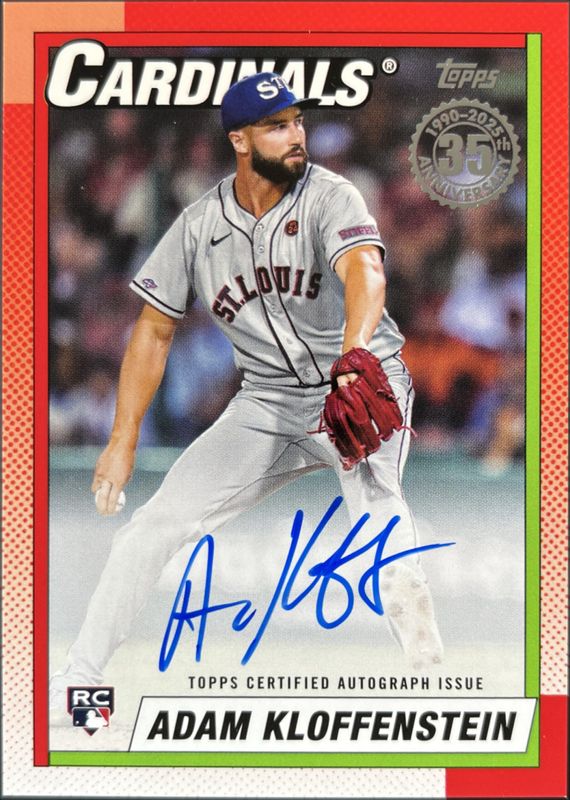 The biggest 30-day change Adam Kloffenstein cards are 2025 Topps #90A-AK 1990 Baseball Autographs (Series 1), 2025 Topps #426 Black /74, and 2025 Topps #426 Black Rainbow /10.