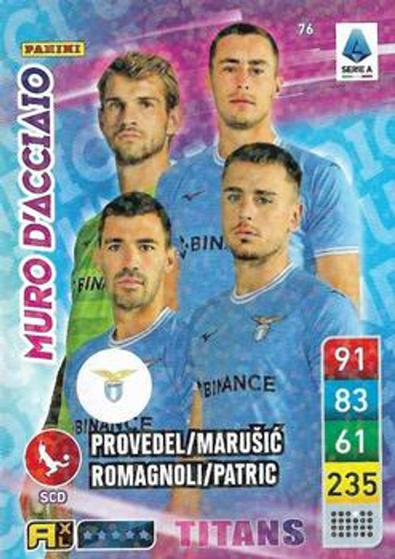 The biggest 30-day change Adam Marusic / Alessio Romagnoli / Ivan Provedel cards are 2023 Panini Adrenalyn XL Calciatori Titans #76 Base.
