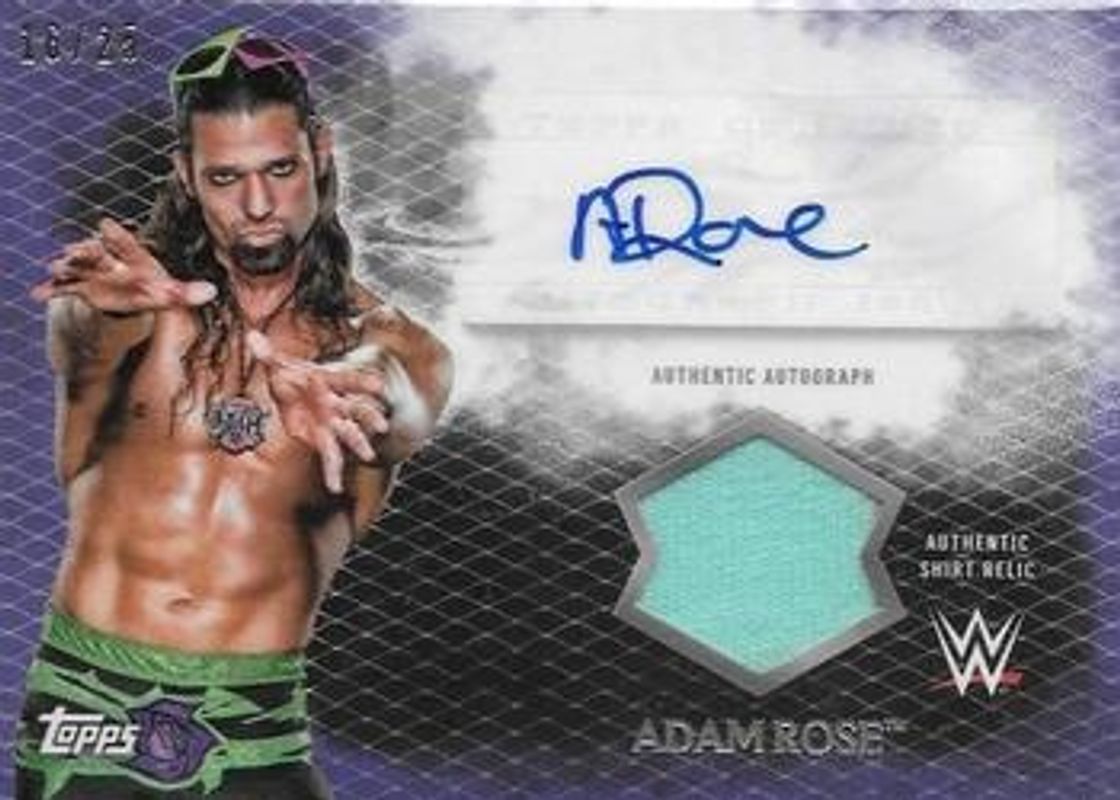 Adam Rose's Wrestling cards are available in at least 3 sets. Adam Rose's biggest 7-day price movers are 2015 Topps WWE Undisputed #UAR-AR Autographs Relics - Purple /25, 2015 Topps WWE Undisputed #UAR-AR Autographs Relics - Black /50, and 2015 Topps WWE Undisputed #62 Printing Plates Yellow /1.