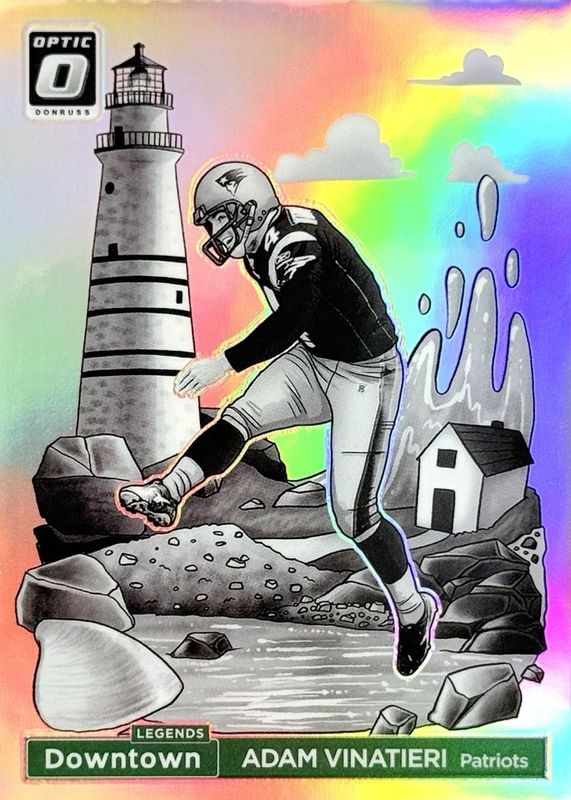 The biggest 30-day change Adam Vinatieri cards are 2024 Optic #9 Downtown Legends /(SSP), 2024 Clearly Donruss #9 Downtown Legends /(SSP), and 2002 Topps Chrome #SBG6 Super Bowl Goal Posts.