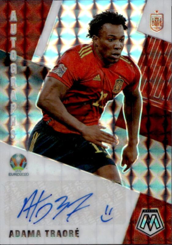 Adama Traore's Soccer cards are available in at least 28 sets. Adama Traore's biggest 7-day price movers are 2021 Mosaic Euro #AM-AT Autographs, 2021 Mosaic Euro #44 Autographs - Black /1, and 2021 Mosaic Euro #44 Autographs - Circles Black /1.