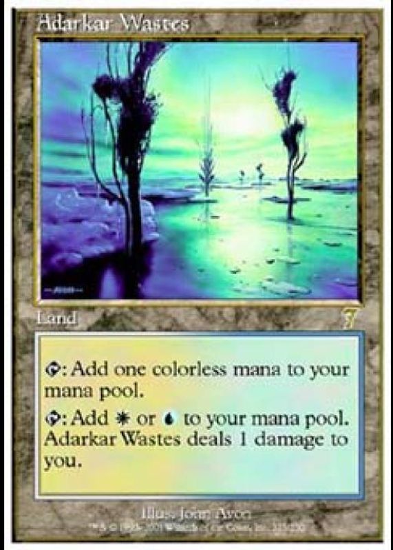Adarkar Wastes' Magic: The Gathering cards are available in at least 1 sets. Adarkar Wastes' biggest 7-day price movers are 2001 Seventh Edition #325 Foil.