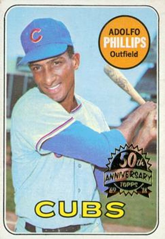 Adolfo Phillips' Baseball cards are available in at least 11 sets. Adolfo Phillips' biggest 7-day price movers are 2018 Topps Heritage #372 50th Anniversary Buybacks, 1971 Topps #418 Base, and 1966 Topps Venezuelan #32 Base.
