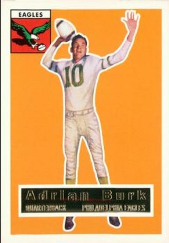 Adrian Burk's Football cards are available in at least 2 sets. Adrian Burk's biggest 7-day price movers are 1994 Topps Archives 1956 #52 Gold, 1994 Topps Archives 1956 #52 Base, and 1956 Topps #52 Base.