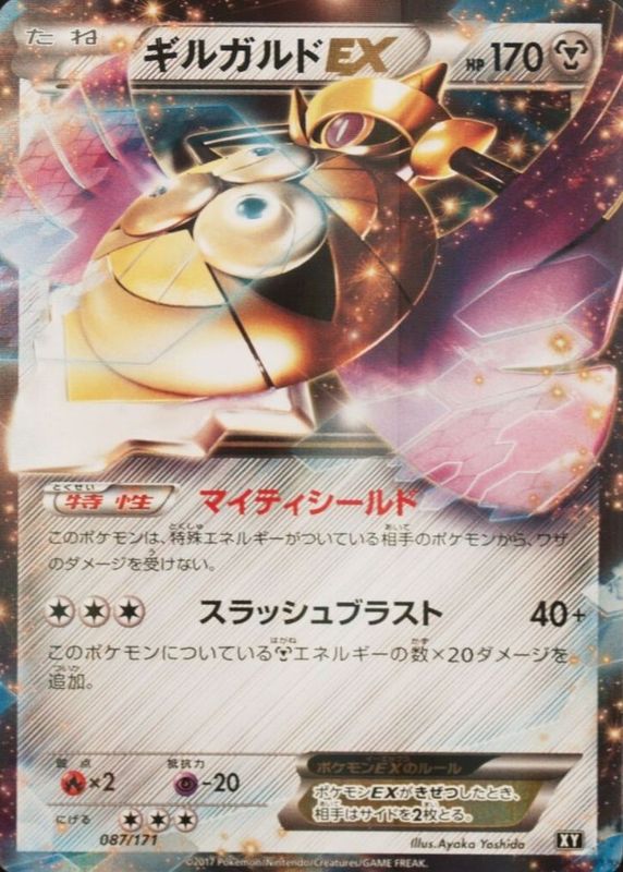 Aegislash ex's Pokemon cards are available in at least 3 sets. Aegislash ex's biggest 7-day price movers are 2023 Scarlet & Violet: Paradox Rift #135/182 Double Rare, 2017 Japanese XY: Best of XY #087/171 Holo, and 2017 Japanese XY: Best of XY #179/171 Holo (Full Art).