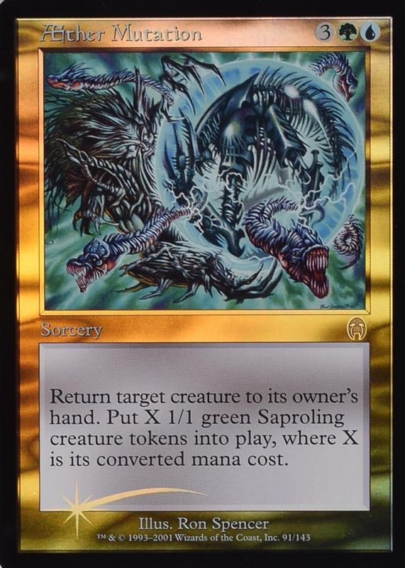 Aether Mutation's Magic: The Gathering cards are available in at least 1 sets. Aether Mutation's biggest 7-day price movers are 2001 Apocalypse #91 Foil, and 2001 Apocalypse #91 Base.