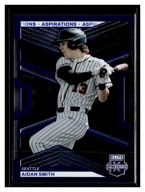 Aidan Smith's Baseball cards are available in at least 8 sets. Aidan Smith's biggest 7-day price movers are 2023 Elite Extra Edition #98 Aspirations Blue /349, 2023 Elite Extra Edition #98 Aspirations die-cut Gold /24, and 2023 Elite Extra Edition #98 Black Die-Cut /1.