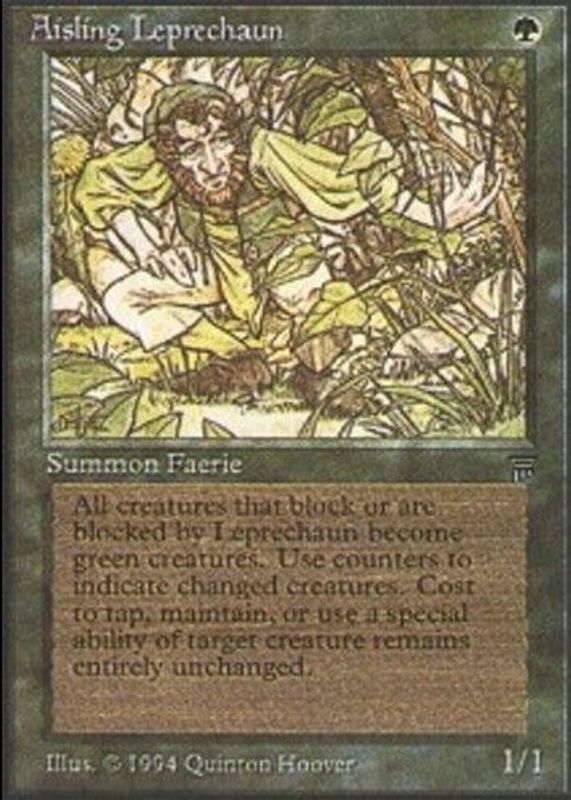 Aisling Leprechaun's Magic: The Gathering cards are available in at least 1 sets. Aisling Leprechaun's biggest 7-day price movers are 1994 Legends Base.