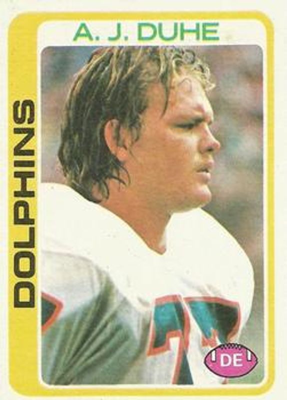 AJ Duhe's Football cards are available in at least 4 sets. AJ Duhe's biggest 7-day price movers are 1978 Topps #22 Base, 1983 Topps Stickers #185 Base, and 1983 Topps Stickers #156 Base.