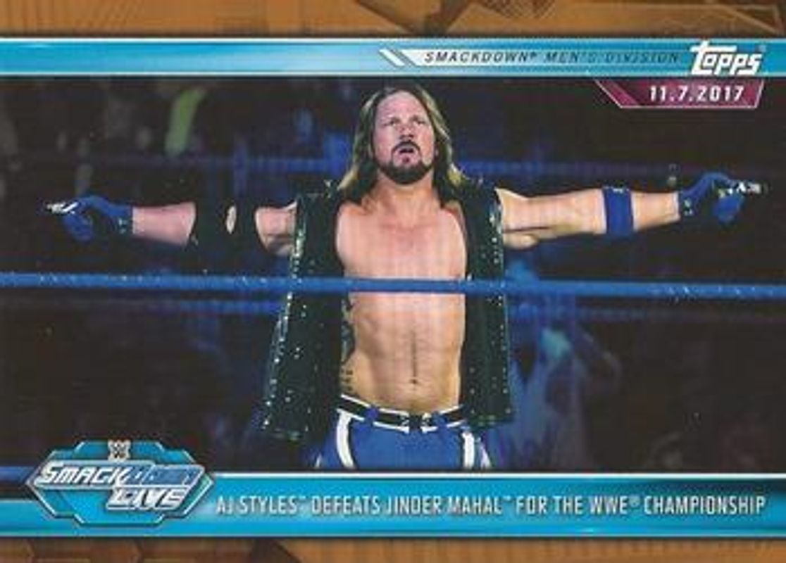 AJ Styles / Jinder Mahal's Wrestling cards are available in at least 1 sets. AJ Styles / Jinder Mahal's biggest 7-day price movers are 2019 Topps WWE Road to Wrestlemania #67 Bronze, 2019 Topps WWE Road to Wrestlemania #67 Red /1, and 2019 Topps WWE Road to Wrestlemania #79 Red /1.