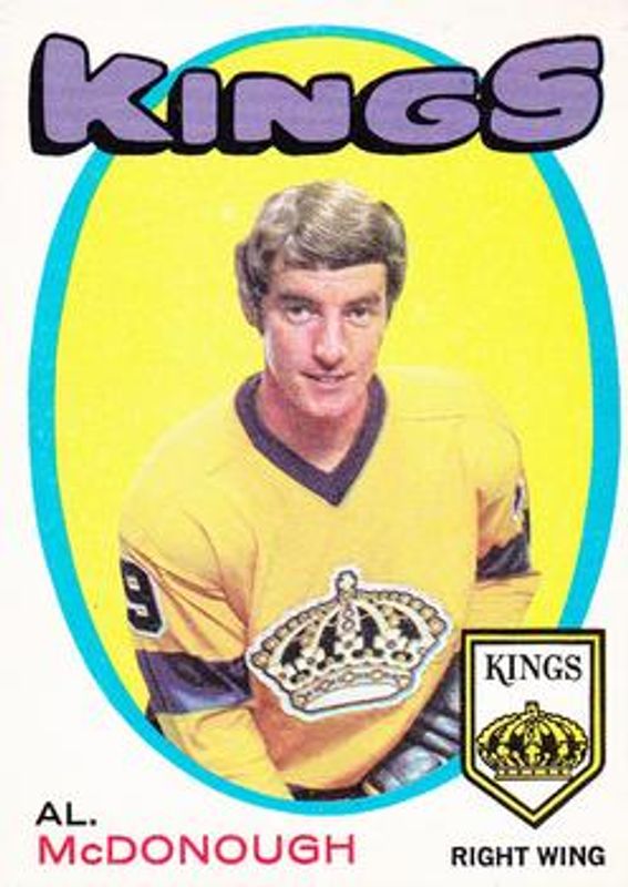 Al McDonough's Hockey cards are available in at least 6 sets. Al McDonough's biggest 7-day price movers are 1971 O-Pee-Chee #150 Base, 1972 O-Pee-Chee #235 Base, and 1973 Topps #176 Base.