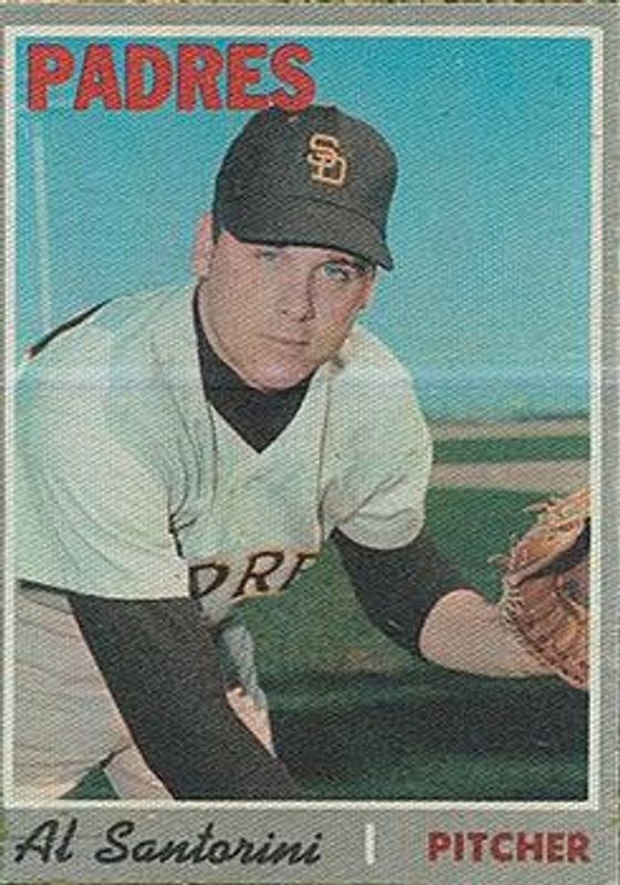 Al Santorini's Baseball cards are available in at least 8 sets. Al Santorini's biggest 7-day price movers are 1970 Test Cloth Stickers Base, 1970 Topps #212 Base, and 1972 Topps #723 Base.