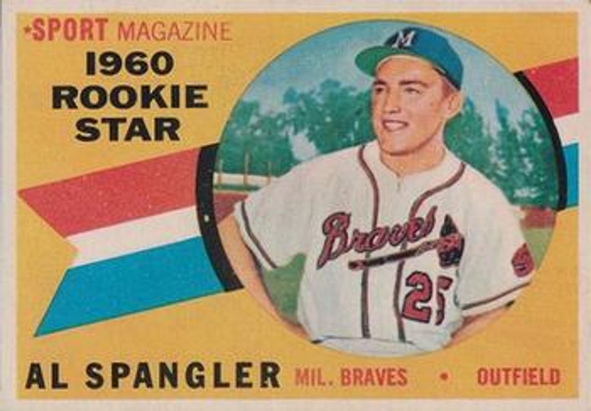 Al Spangler's Baseball cards are available in at least 19 sets. Al Spangler's biggest 7-day price movers are 1960 Topps Venezuelan #143 Base, 1964 Topps #406 Base, and 1966 Topps #173 Base.