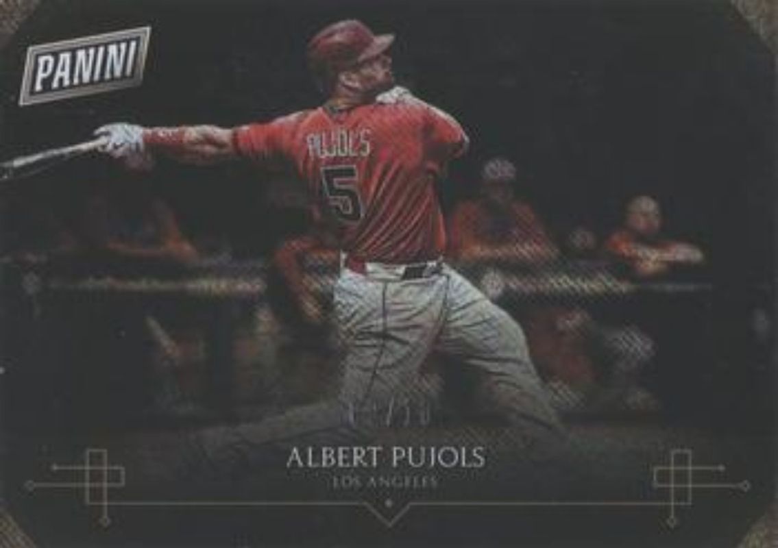 Albert Pujols' Multi-Sport cards are available in at least 16 sets. Albert Pujols' biggest 7-day price movers are 2016 Panini Black Friday #21 Panini Collection Rapture /10, 2016 Panini Black Friday #21 Panini Collection, and 2016 Panini Black Friday #21 Panini Collection Holo Plaid /1.