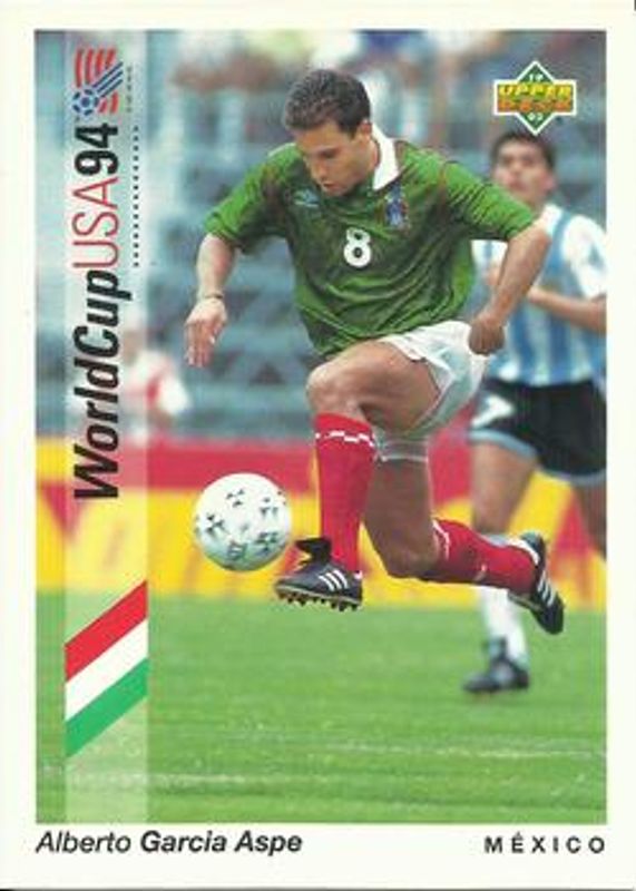 Alberto Garcia Aspe's Soccer cards are available in at least 4 sets. Alberto Garcia Aspe's biggest 7-day price movers are 1993 Upper Deck World Cup Preview (English/Spanish) #38 Base, 1993 Upper Deck World Cup Preview Adams Gum #83 Base, and 1993 Upper Deck World Cup USA94 Mexico Box Set #38 Base.