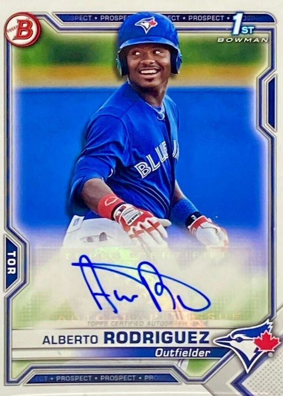 Alberto Rodriguez's Baseball cards are available in at least 1 sets. Alberto Rodriguez's biggest 7-day price movers are 2021 Bowman #PAPR-AR Paper Prospect Auto (1st), 2021 Bowman #PAPR-AR Paper Prospect Auto - Gold Border /50 (1st), and 2021 Bowman #PAPR-AR Paper Prospect Auto - Blue Border /150 (1st).