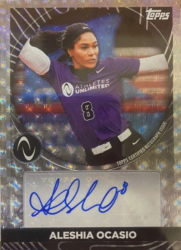 Aleshia Ocasio's Multi-Sport cards are available in at least 2 sets. Aleshia Ocasio's biggest 7-day price movers are 2023 Topps Athletes Unlimited #AUA-AO AU Athlete Autographs Foilfractor /1, 2023 Topps Athletes Unlimited #AUA-AO AU Athlete Autographs, and 2023 Topps Athletes Unlimited #FN-18 Face of the Nation.
