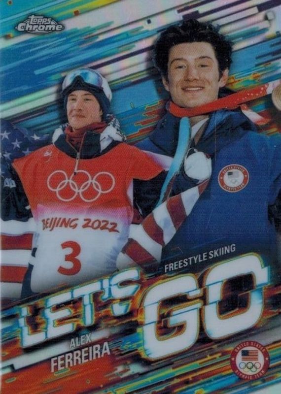 Alex Ferreira's Olympics cards are available in at least 1 sets. Alex Ferreira's biggest 7-day price movers are 2026 Topps Chrome US Olympic & Paralympic Team Hopefuls #LG-18 Let's Go /(SSP), 2026 Topps Chrome US Olympic & Paralympic Team Hopefuls #LG-18 Let's Go - Superfractor /1, and 2026 Topps Chrome US Olympic & Paralympic Team Hopefuls #HX-18 Helix /(SSP).