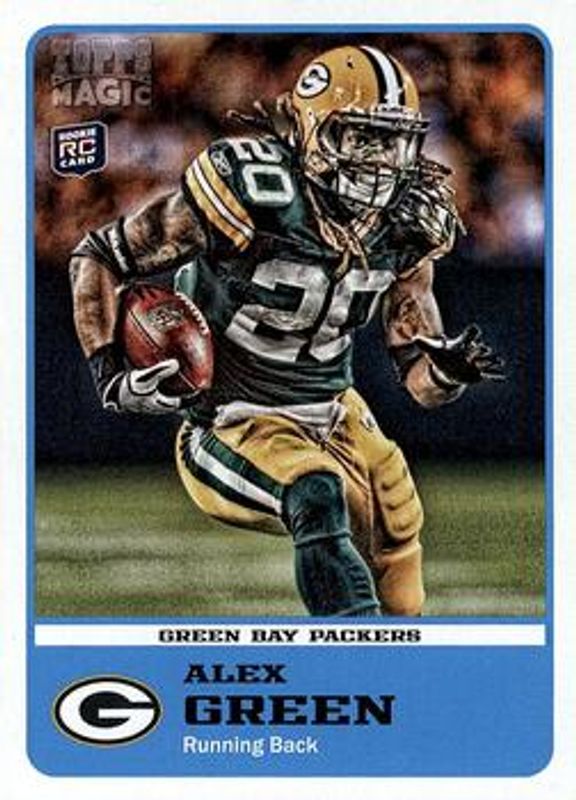 Alex Green's Football cards are available in at least 31 sets. Alex Green's biggest 7-day price movers are 2011 Topps Magic Rookies #51 Base, 2011 Topps Magic Rookies #51 Autographs, and 2011 Topps Magic Rookies #51 Autographs - Black Border /1.