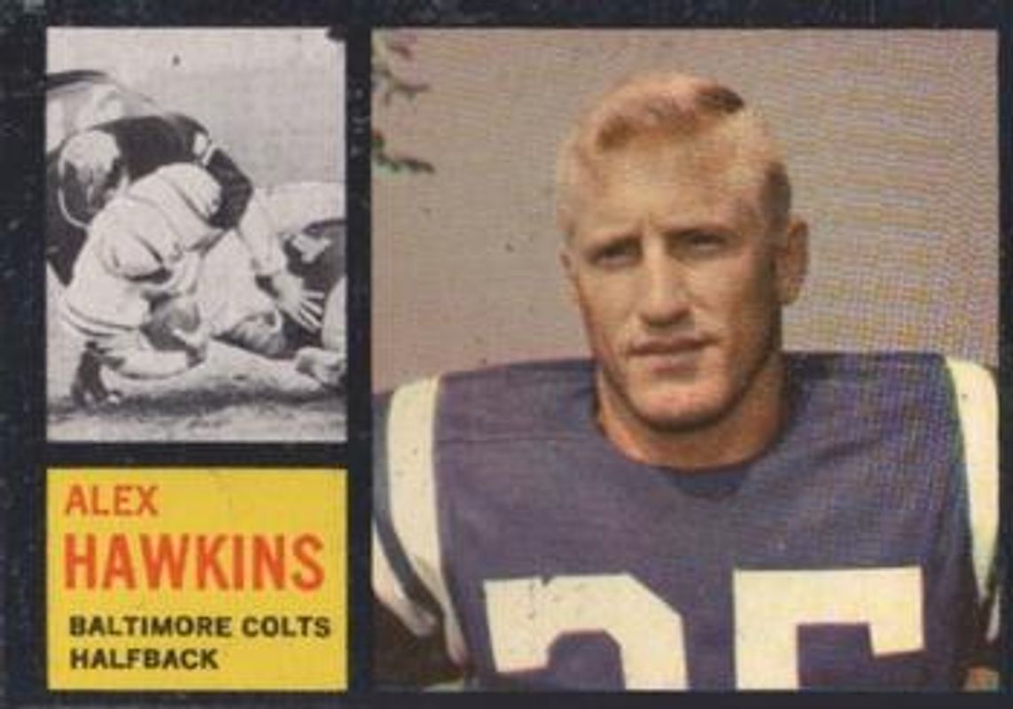 Alex Hawkins' Football cards are available in at least 2 sets. Alex Hawkins' biggest 7-day price movers are 1962 Topps #3 Base, and 1967 Philadelphia #3 Base.