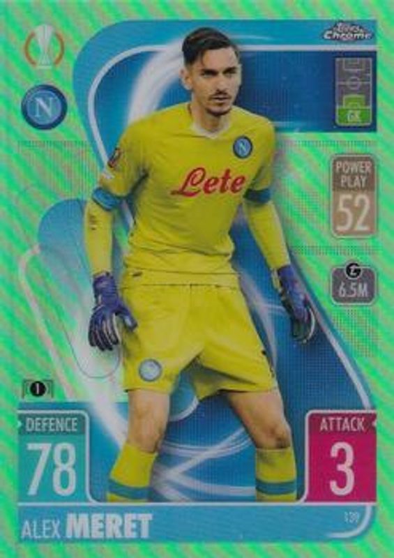 The biggest 30-day change Alex Meret cards are 2021 Topps Chrome Match Attax UEFA Champions League & Europa League #139 Neon Green /99, 2021 Topps Chrome Match Attax UEFA Champions League & Europa League #139 Refractor, and 2021 Topps Chrome Match Attax UEFA Champions League & Europa League #139 Black /15.