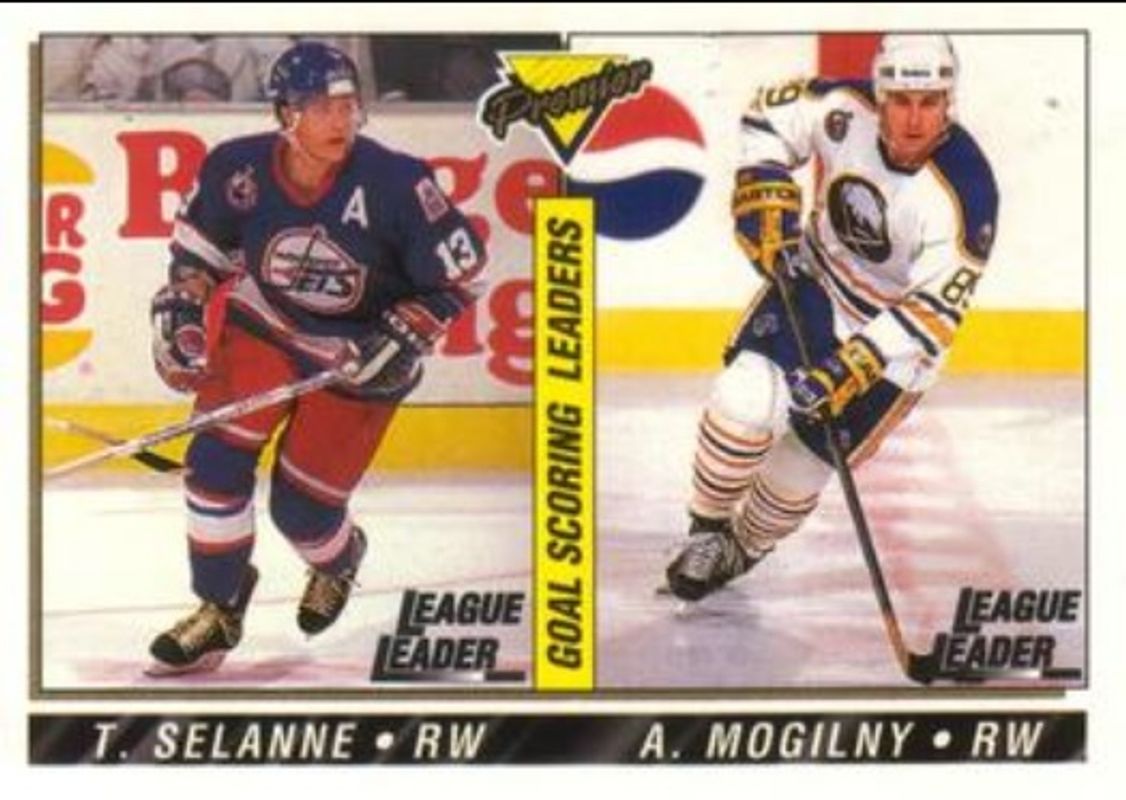 Alexander Mogilny / Teemu Selanne's Hockey cards are available in at least 3 sets. Alexander Mogilny / Teemu Selanne's biggest 7-day price movers are 1993 O-Pee-Chee Premier #148 Base, 1993 Score #477 Base, and 1993 Score Canadian #477 Base.