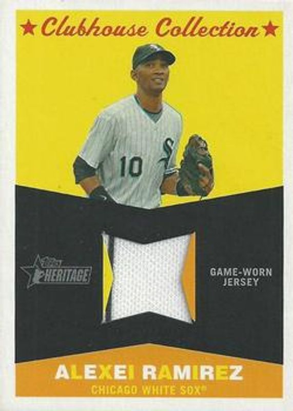Alexei Ramirez's Baseball cards are available in at least 7 sets. Alexei Ramirez's biggest 7-day price movers are 2009 Topps Heritage #CC-ALR Clubhouse Collection Relics, 2010 Topps Heritage #C123 Chrome /1961, and 2010 Topps Heritage Framed Dual Stamps /50.