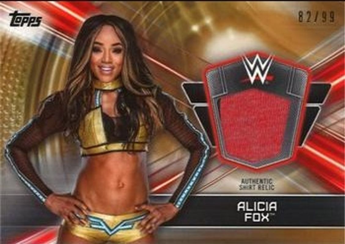 Alicia Fox's Wrestling cards are available in at least 23 sets. Alicia Fox's biggest 7-day price movers are 2019 Topps WWE Road to Wrestlemania #SR-AF Shirt Relics - Bronze /99, 2019 Topps WWE Road to Wrestlemania #SR-AF Shirt Relics - Gold /10, and 2019 Topps WWE Road to Wrestlemania #SR-AF Shirt Relics - Red /1.
