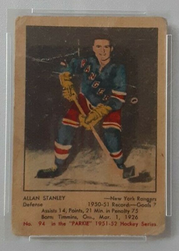 Allan Stanley's Hockey cards are available in at least 21 sets. Allan Stanley's biggest 7-day price movers are 1951 Parkhurst #94 Base, 2002 Parkhurst #166 Parkie Reprints, and 2002 Parkhurst #274 Parkie Reprints.