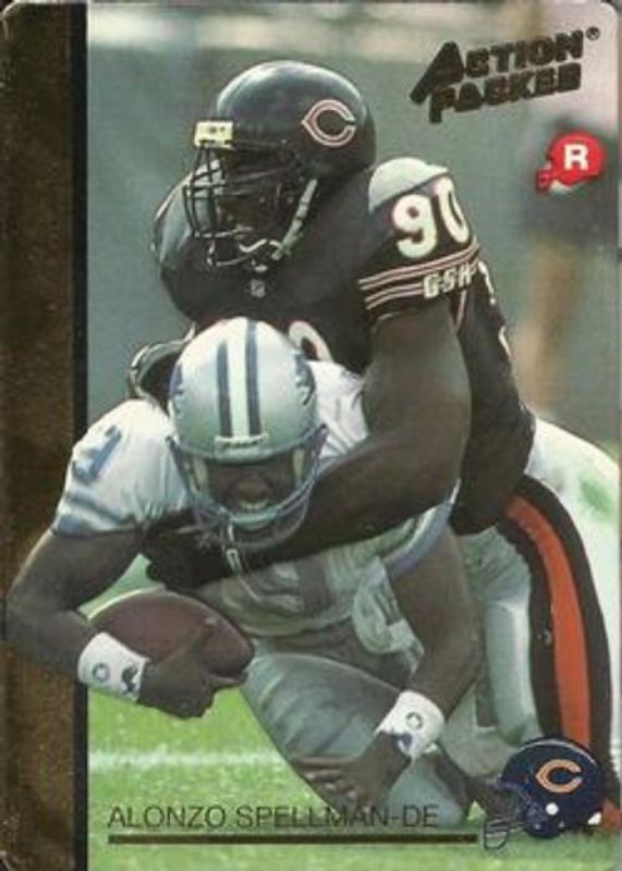 Alonzo Spellman's Football cards are available in at least 19 sets. Alonzo Spellman's biggest 7-day price movers are 1992 Action Packed Rookie/Update #5 Base, 1992 Action Packed Rookie/Update #5 Mint /250, and 1992 Action Packed Rookie/Update #19G 24K Gold.