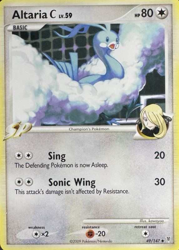Altaria C's Pokemon cards are available in at least 1 sets. Altaria C's biggest 7-day price movers are 2009 Platinum: Supreme Victors #049/147 Base, and 2009 Platinum: Supreme Victors #049/147 Reverse Holo.