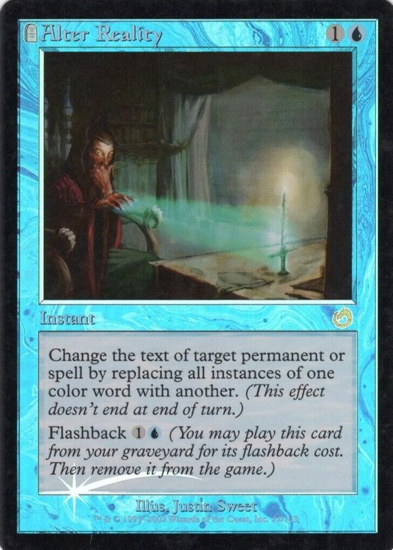 Alter Reality's Magic: The Gathering cards are available in at least 1 sets. Alter Reality's biggest 7-day price movers are 2002 Torment #22 Foil, and 2002 Torment #22 Base.
