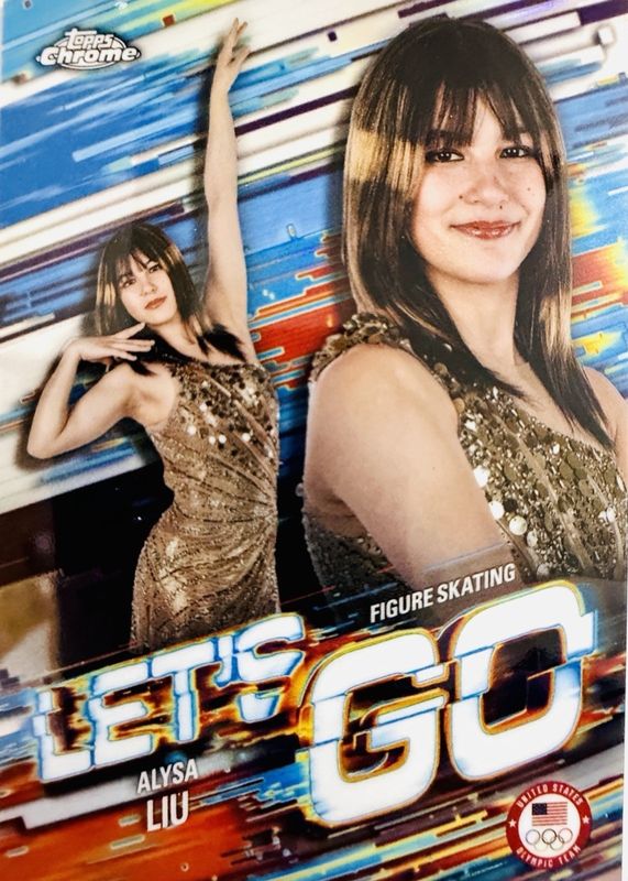 Alysa Liu's Olympics cards are available in at least 1 sets. Alysa Liu's biggest 7-day price movers are 2026 Topps Chrome US Olympic & Paralympic Team Hopefuls #LG-2 Let's Go /(SSP), 2026 Topps Chrome US Olympic & Paralympic Team Hopefuls #LG-2 Let's Go - Superfractor /1, and 2026 Topps Chrome US Olympic & Paralympic Team Hopefuls #HX-2 Helix /(SSP).